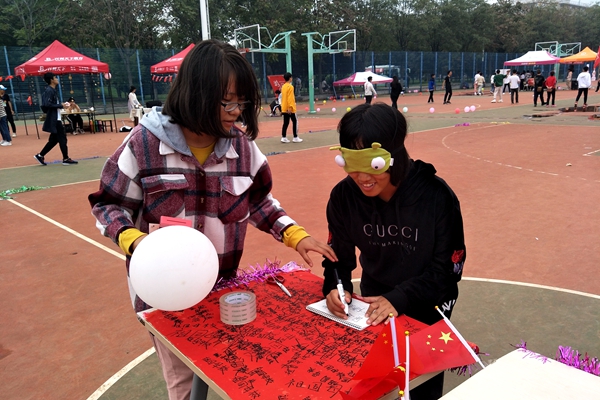 此次游园会为假期留校学生带来欢乐,同时也与师生一起共同庆祝新中国成立七十华诞,师生在游戏中巩固爱国爱校知识常识,感受祖国繁荣富强,增强爱国主义情怀。
