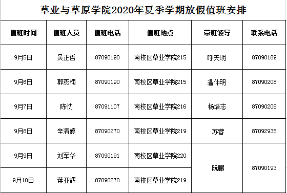 太阳成集团tyc97282020年夏季学期放假值班安排