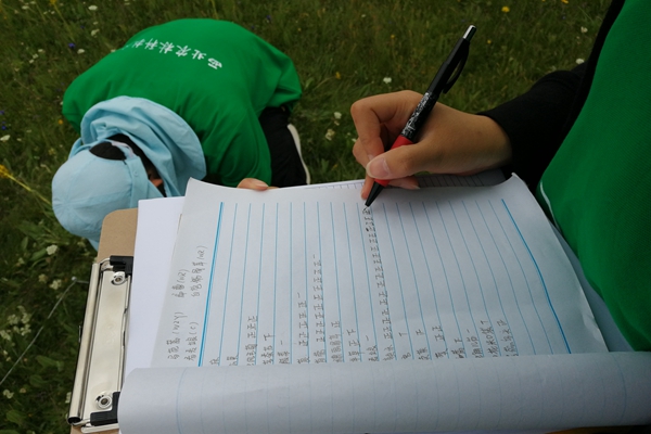 在调查过程中,团队指导教师陈文青悉心传授生态调研的方法和技巧,讲述不同种类植物的特征、生态价值和饲用价值,手把手指导大家进行样方安置,强调实验细节。队员们在老师的指导下认真负责、团结协作,细致地记录数据,将专业知识运用到实践中,不仅加深了对专业知识的理解与掌握,更对河南县草原现状有了深入的了解。