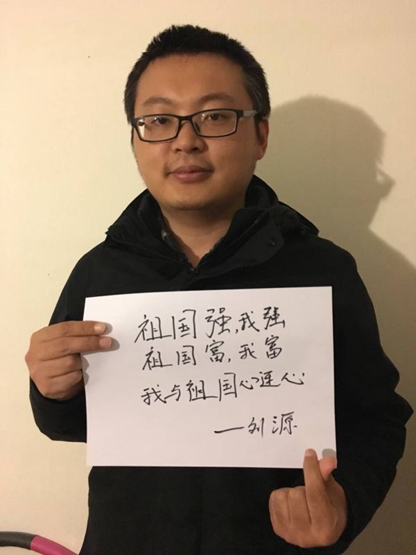 刘源表示目前他虽身处异乡,但他永远与祖国心连心,祖国强,他强,祖国富,他富,祝福祖国越来越强大!