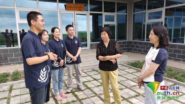 图为草原生态系统研究院院长邢旗老师、蒙草生态集团副总经理王媛媛老师与团队成员交流草原植物保护和生态修复方面的技术及成效 中国青年网通讯员 林思雨 摄