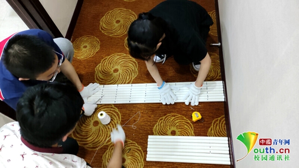图为实践团队成员正在制作草地群落调研用样方 中国青年网通讯员 张岩 摄