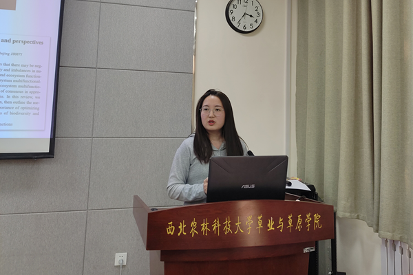 何佳同学对于土壤生物网络结构对生态系统功能的调控作用进行了深入浅出的介绍,参会同学认真倾听了报告并提出相关问题,何佳同学一一解答了大家的疑惑,为同学们拓宽了科学思维的边界,增强了科研创新意识和能力。草业学院硕士研究生同雨涛表示:“何佳同学的报告,让我明白随着全球生物多样性的加速丧失,生态系统功能可能也受到了负面影响,所以了解生物多样性与生态系统功能之间的关系至关重要!”此次报告会的成功举办,为学院的学术交流活动增添了一抹亮色。
