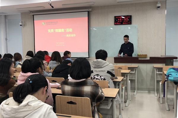 党员义务服务,共促学风创优。学院以党员为主力军,针对学业预警、学习困难、基础薄弱等学生群体,通过座谈会、面对面辅导、走访宿舍等多种途径和方式,陆续开展了党员“微服务”之学习方法及经验交流会、保研学生经验交流会、高数辅导、“一对一”学业帮扶等一系列交流会。通过分享自身经验,提供有益建议,耐心答疑辅导,帮助他们改进学习方法、掌握学习技巧、夯实知识基础,用党的先进性引领优良学风形成,形成了党员以实际行动密切联系群众的良好氛围。